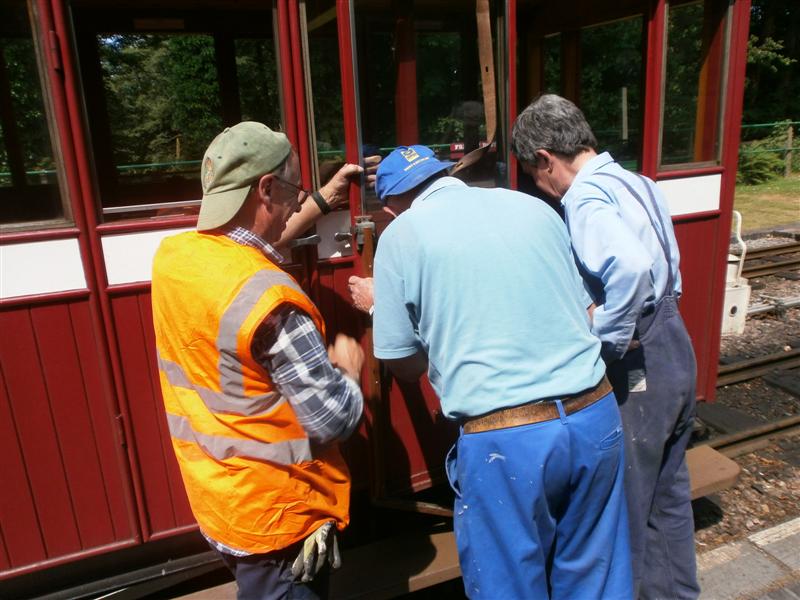 4. The mobile carriage repair gang of Martin Williams, Dave Evans and Jim Price 'huddled' around various doors of the train at certain times.