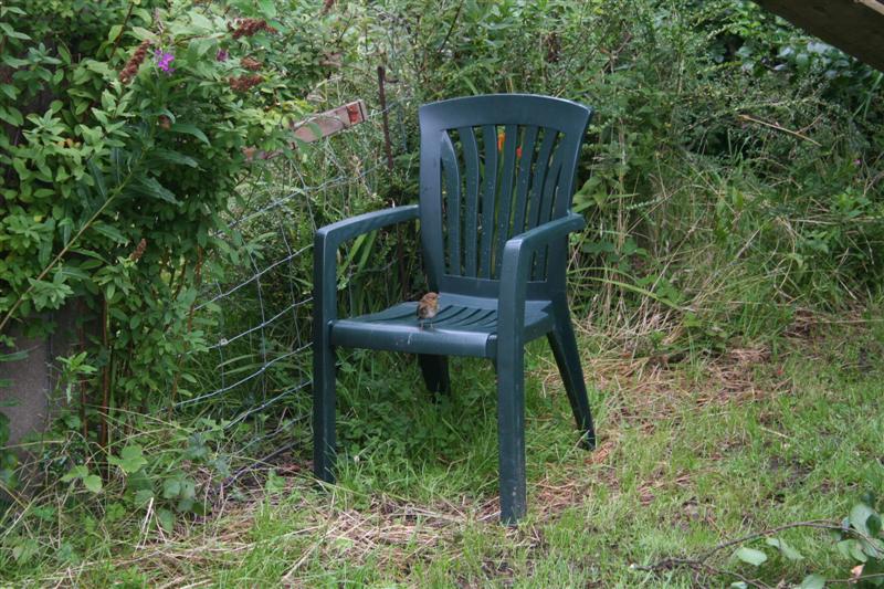 2. "Young Robin" resting on a seat before sighting further food scraps to eat.