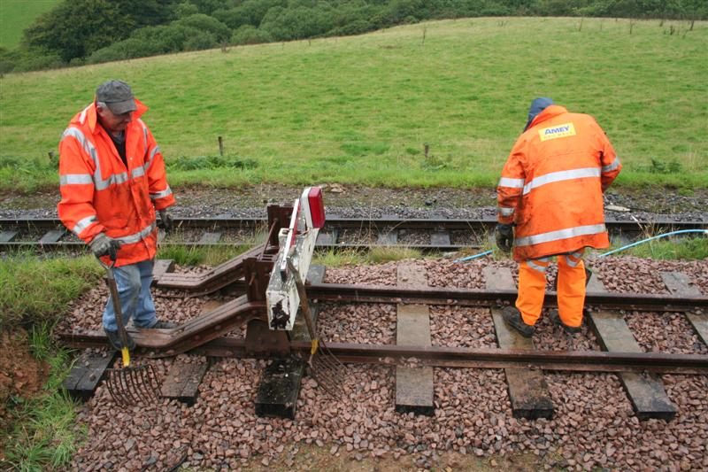 13. Martyn & Richard pack ballast under the buffer stop on the headshunt.