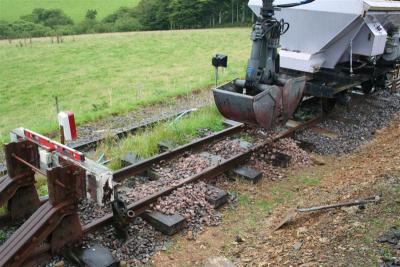 9. The digger on the well wagon grabs bucket fulls of ballast from the ballast hopper located on the headshunt.