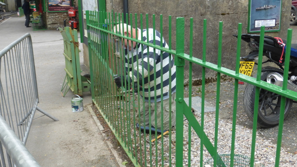 4. Nigel Spencer, looking as though he is in a cage, continues with the everlasting railing painting.