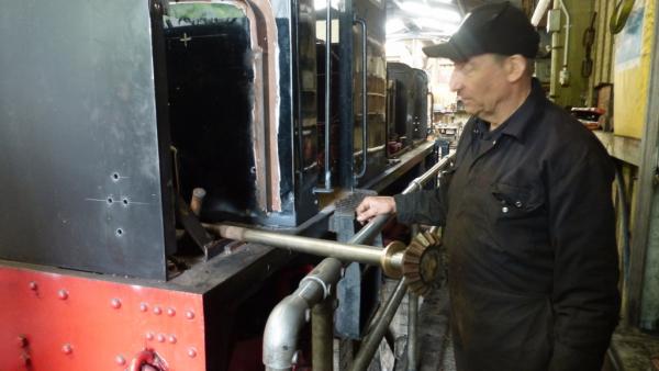 8. Driver Graham attended to the lubrication of ISAAC with "encouragement" from Fireman Andy.