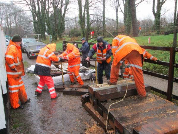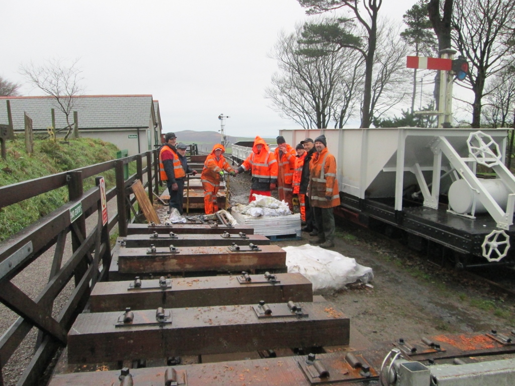 An extra work party is to take place next Tuesday from 1300-1600, after the last train required by the regular Tuesday coach party. The track in the up line will then be removed, rails lifted across to the down line cess, sleepers to Killington Lane and old fixings to store.
