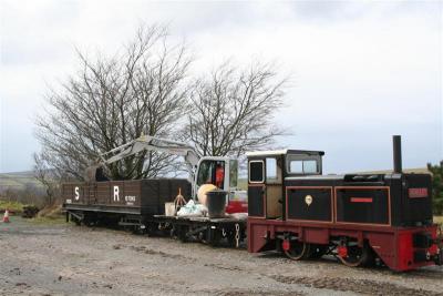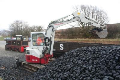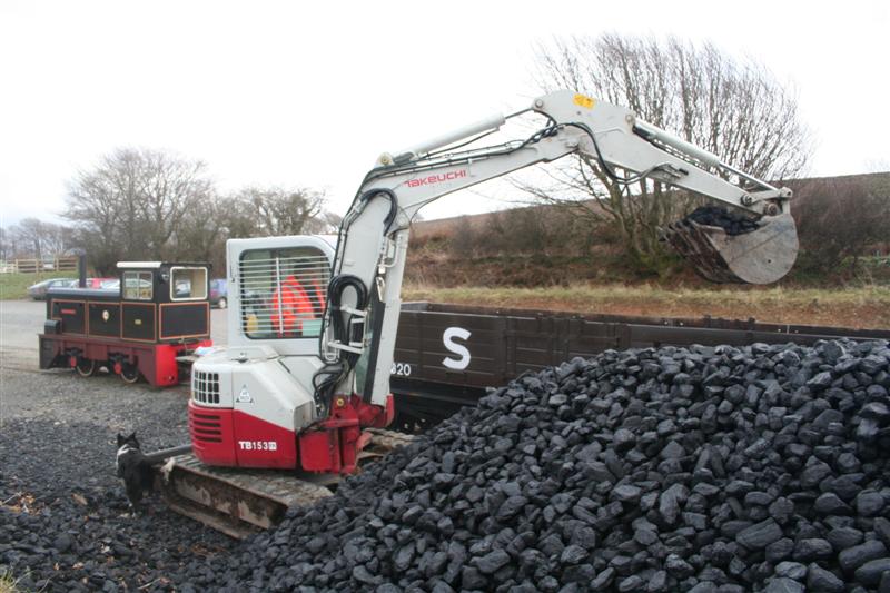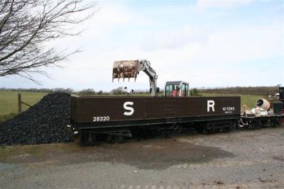 9. With the digger now returned to Woody Bay, Martyn Budd loads SR bogie open 28320 with locomotive coal.