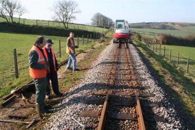 7. John Villers and Dave Bloomfield begin to undo the fishplate bolts on the panels whilst Martyn Budd goes to collect the excavator positioned earlier on the occupation crossing.