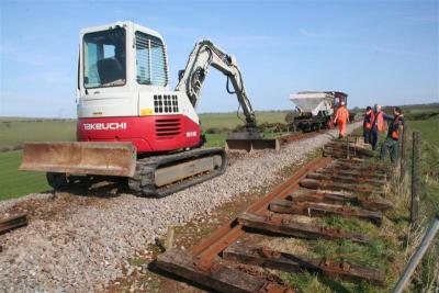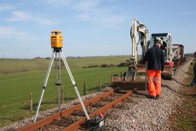 10. Alistair Hall begins the surveying as the excavator scrapes away the ballast to a lower depth.