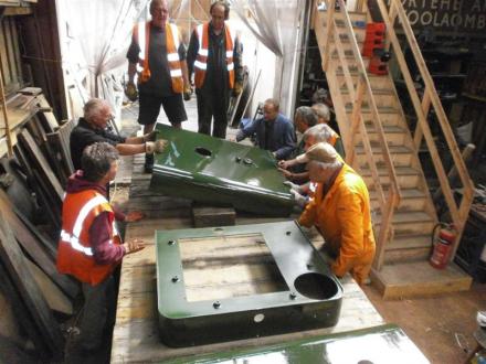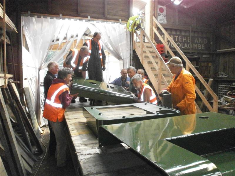 8. The first door frame for the restored ex MoD Brake Van SR No.56042 is trial fitted before painting. The wheelsets are currently off-site for regauging. On their return this vehicle is almost ready to enter L&B service.