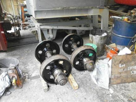 9. Newly regauged wheelsets from the newest ex MoD flats waiting to be refitted into their refurbished and repainted bogies.