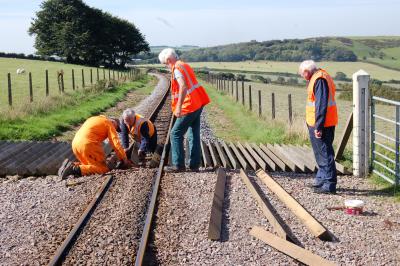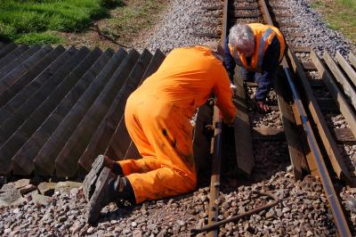 These wooden rails are fixed each side of the crossing to prevent animals straying onto the line. They had been removed so the line could be lifted and packed to level.
