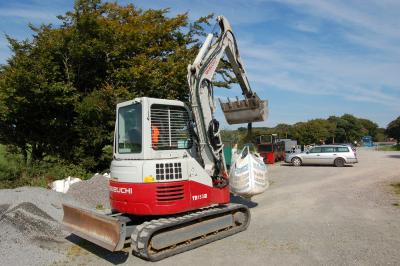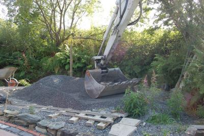 4. The digger is used to carry bags of gravel from one end of the car park to the other. Just think how many wheelbarrow loads are in that bag!