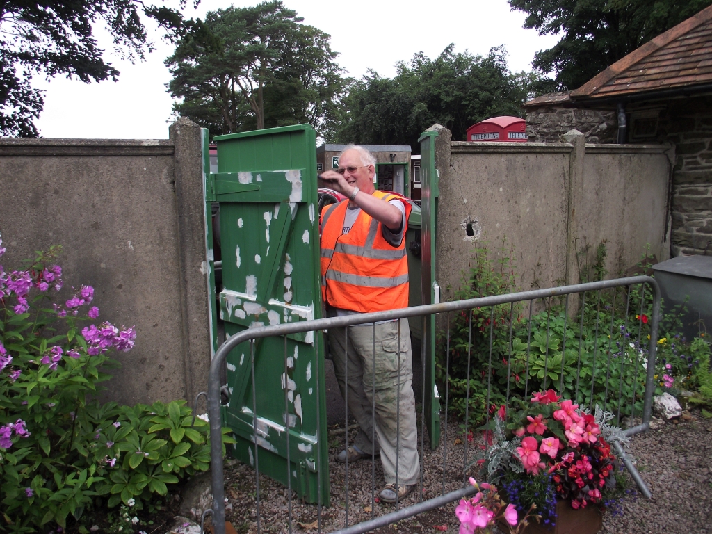 8. Dave Evans fitting a colourful bolt to the new machine shop doors.