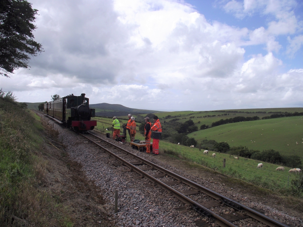 1. The first train of the day hauled by AXE arrives back at Woody Bay. Today's crew was Driver Graham Varney, Fireman John Heys and Guard Bob Ayres.