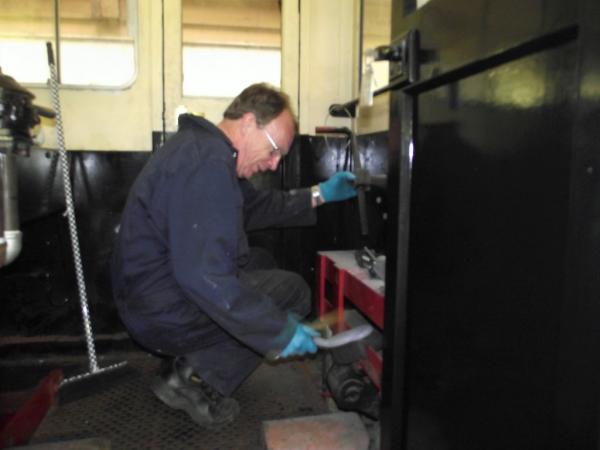 7. The inside of PILTON’s cab being cleaned ready for a paint job - Barrie Cann with banister brush in hand. Barrie’s wife might just show him where these brushes are kept at home!