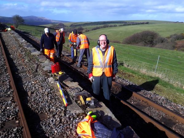 4. Kevin Williams was busy tidying the cess ballast just below the retaining wall.