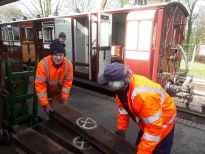 8. & 9. A quantity of old sleepers were brought back from Killington Lane in the guards van and loaded onto the platform trolley.