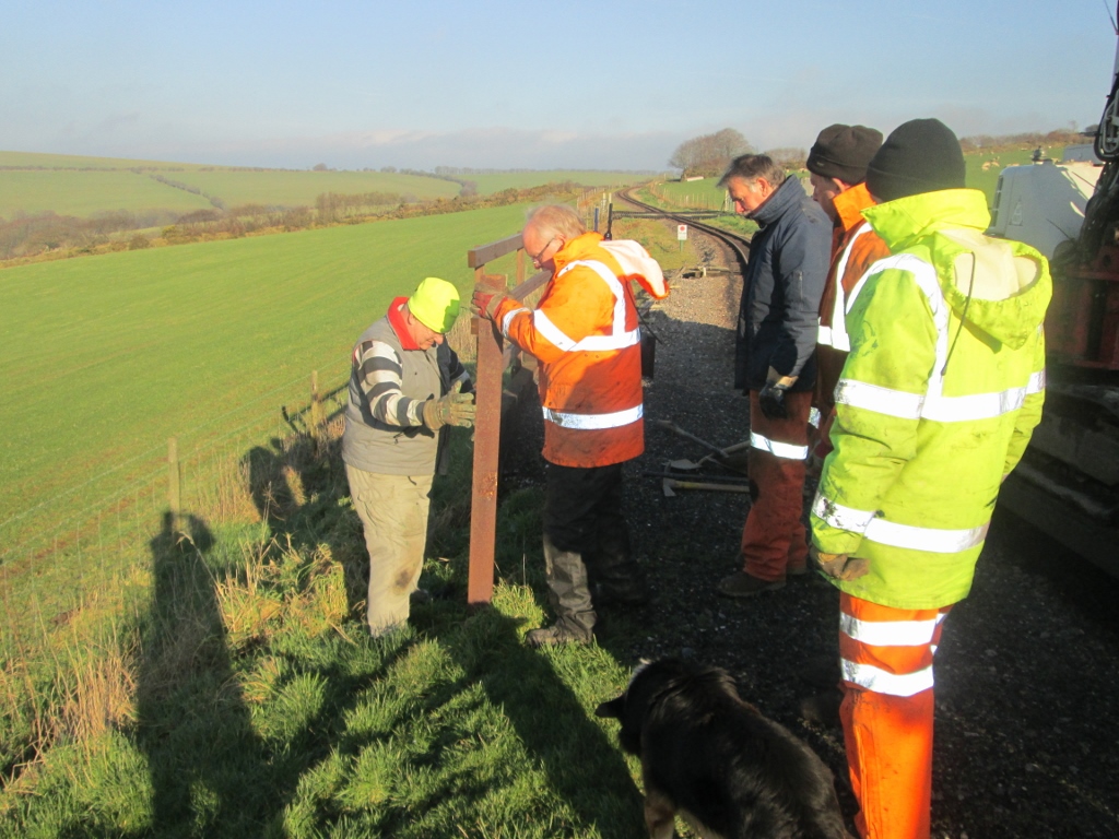 6. Visitors like to observe the steam locomotive during the run round manoeuvre - with a fourth carriage in service the platform area at the Woody Bay end needs be extended. The job here is to adjust the safety fence position to accommodate the fourth carriage. The path will need to be raised and will be supported by redundant sleepers and rail posts.