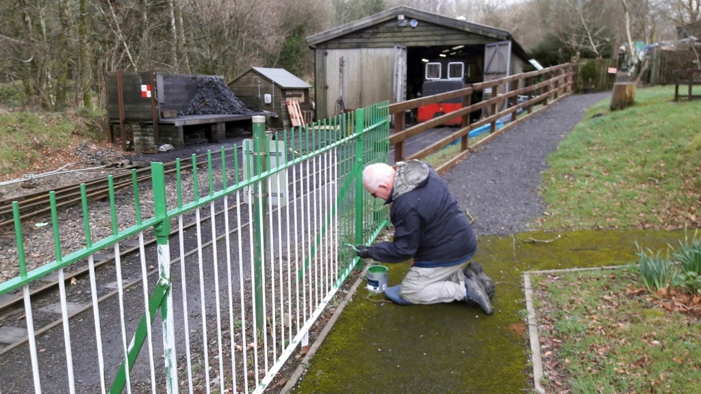 13. Back outside, still faithful painting Nigel Spencer, easily recognisable by the liberal distribution of green paint on his person, continued workng on the fencing and yes that is PILTON in the background....