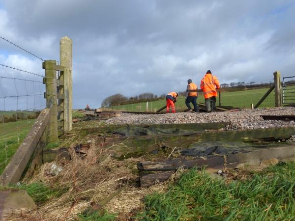 Boarding a works train and armed with a suitable collection of tools, some of the gang departed for the farm crossing nearest Killington Lane.