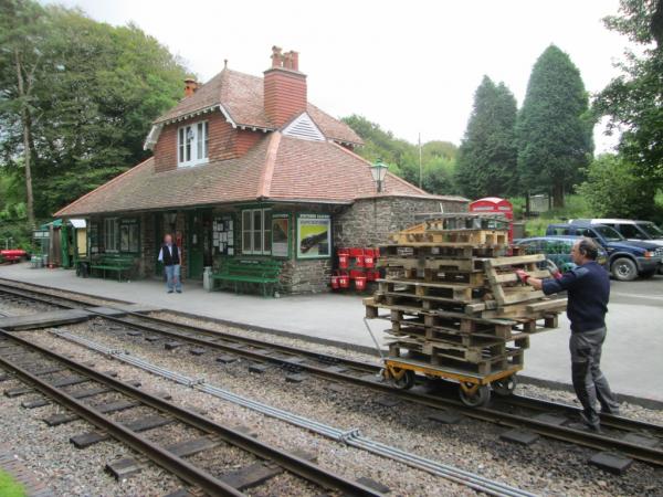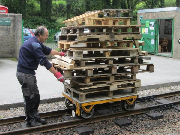 12. The wood from redundant pallets is used to light the fires of our steam engines. A delivery today required Dave Bloomfield to use the trolley to transport them down to the shed.