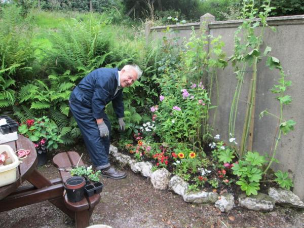 16. Gardeners Don and Mary were here today, tending to flower beds beside the picnic tables.