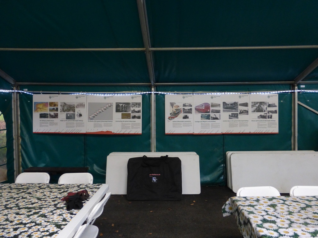 1. The first job of the day was to put up the eight information panels - previously located inside the Tea Rooms - inside the marquee.