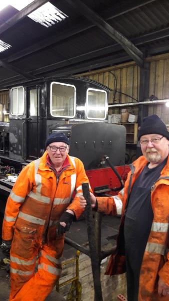 7. Two of our signalling engineers , Dick Gunn and Trevor Buck were busy today looking for some scrap lengths of steel for their next project. Behind them is PILTON - the rebuild almost complete.