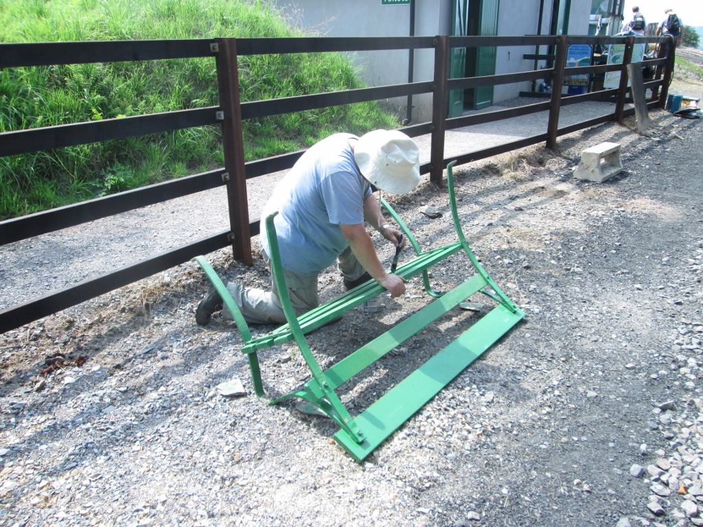 8. Nigel Spencer paints a top coat onto another bench seat.