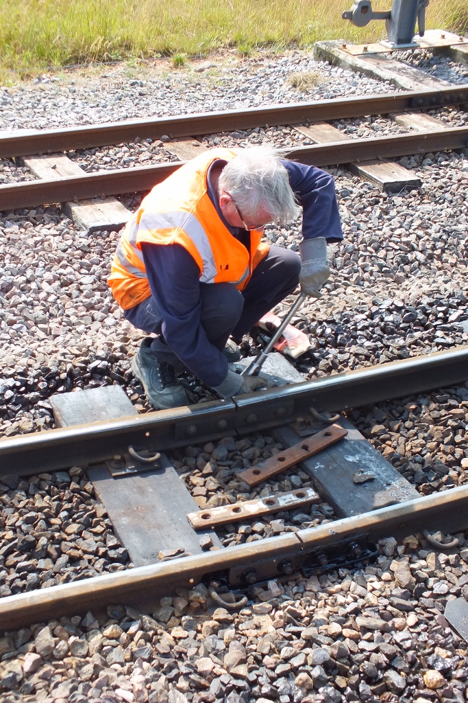 7. Don (now with his S&T hat on) also checked the correct movement of the point rodding and locking at the crossover during the hot weather