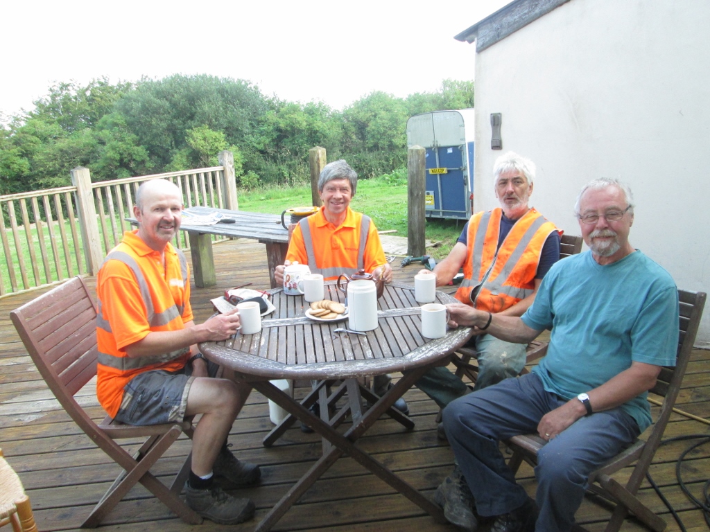 12. Nigel, Dave, Jim and new volunteer Trevor enjoy a morning tea break on the decking.
