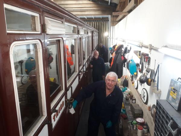 10. The Paint Shop Boys (Roddy Haswell, Jim and Geoff) undertake some maintenance to carriage No.7.
