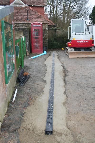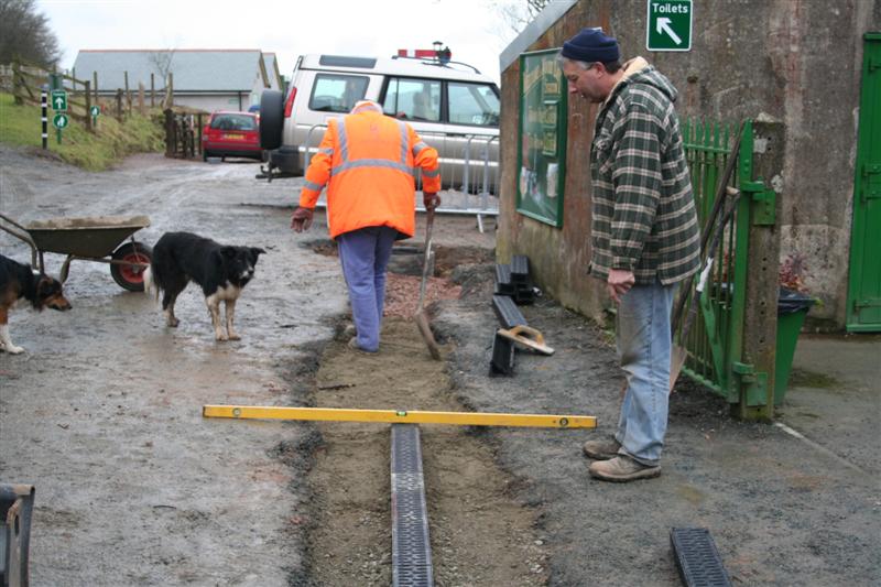 1. Martyn Budd checks the level of the drainage ducting pipe by the stable.
