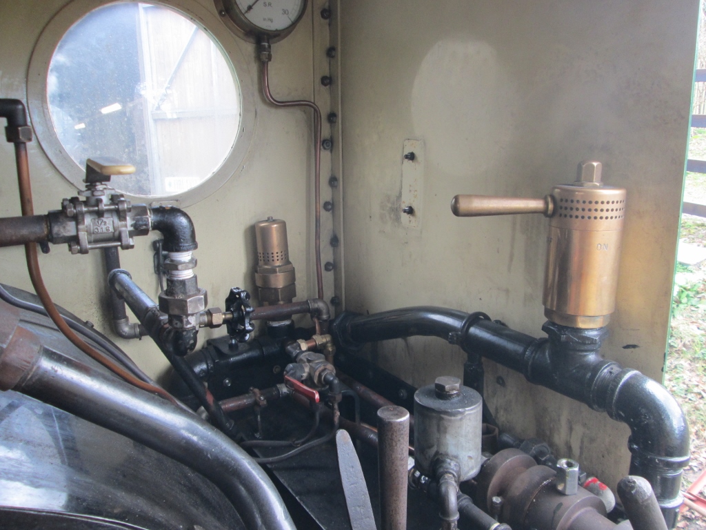 14. Inside AXE's cab on the right is the new steam brake recently fitted by the engineers .