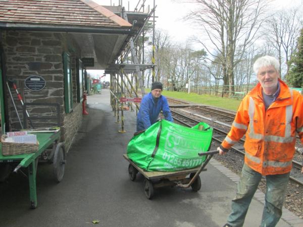 2. Later Roger Bye and Jim McFarlane transport some firewood off cuts past the station to the shed.