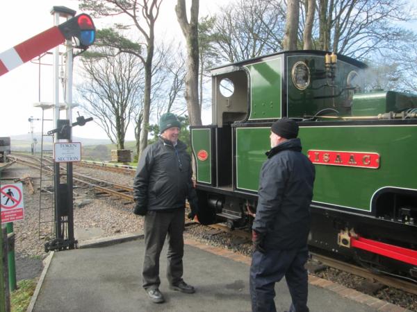12. Guard Bob Ayres and Driver Pete Williams enjoy some banter on the platform.