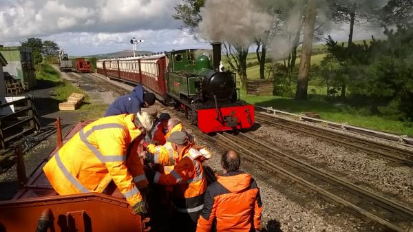 Meanwhile, the changeable weather encouraged yet more visitors to Woody Bay today. Pete Williams, John Uphill and Richard Bullock were ISAAC's footplate crew, with Bob Ayres as Guard. Tony Cross, Gail Ward and Dave Tooke were in the booking office, shop, and upstairs admin.