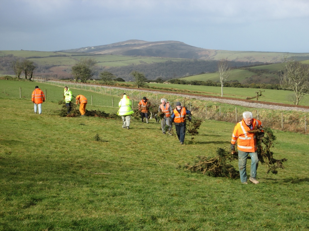1. In the morning the gang continue dragging all the piles of cut down branches from the field to the car park.