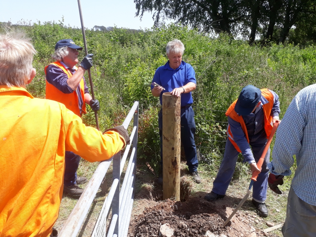 22, 23. & 24. meanwhile at Killington Lane, the main job today was to replace the wooden gate post. Everyone took turns with the digging out the rotten post and assisted with installing the new one.