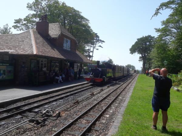 The weather here in North Devon has at last become summer-like. High temperatures today, even at 1000 feet above sea level, Woody Bay! Flagship locomotive LYN was on duty today.