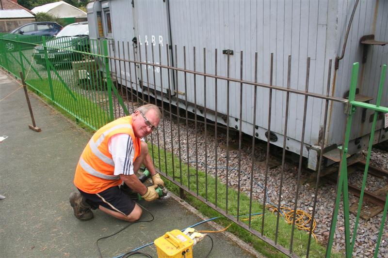 1. The last railings fence panel on the up platform was cleaned and repainted today. It was Richard Willey's turn to wield the angle grinder wire brush on this panel.