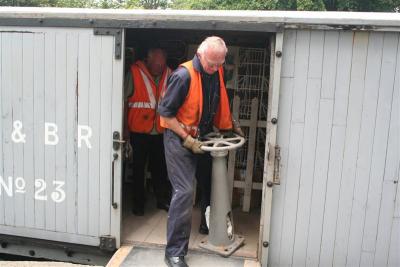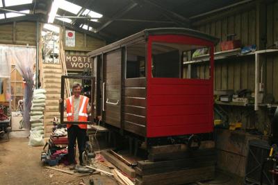 The bogies and frame for the heritage Brake Composite carriage, No.17, are almost completed. Transferring this historic brake column originally from the scrapped coach left at Snapper will help to finally complete the braking and underframe gear of Coach 17. Although Van 23 can be moved on its replica bogies, the braking gear had not been connected, and the brake column has been on show for several years at Woody Bay.