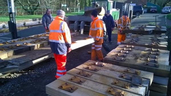 1. The track in the down platform line is to be relaid this weekend as part of the winter-working weekend. As the ballast has already been laid, the Thursday gang load the plated sleepers onto the well wagon.