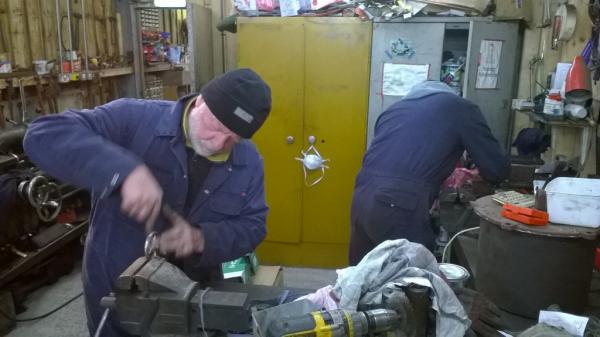 5. Meanwhile, in the workshop the engineering team are busy working on parts for the loco's. Pete Williams cleans up a valve for ISAAC.