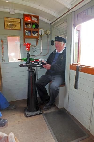 11. L&BR General Manager Martyn Budd had his first driving turn on Charles Wytock today. This didn’t pass without comment, but we did compliment him on the smooth ride back up the hill. (Fireman Andy Foster was putting lamp on the rear carriage when the photo was being taken.)