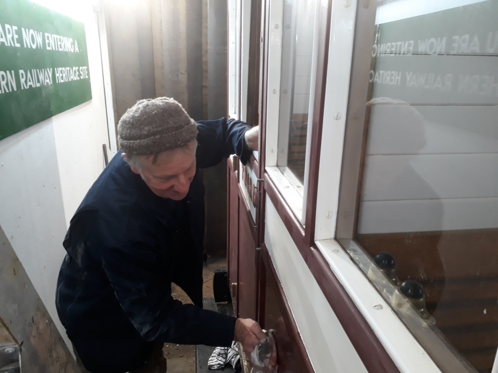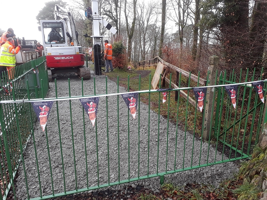 12. Electrical Dave Drayson was on hand to feed the wire to the replacement barley twist lamp post recentlly installed on the down platform replacing the rotten wooden one - just as the Southern Railway had done back in 1933.
