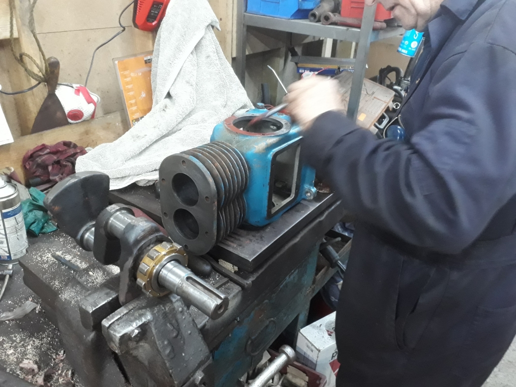3. & 4. Progress with Hunslet D6652 as John Uphill prepares this air compressor for refitting in the locomotive currently stabled over the inspection pit.