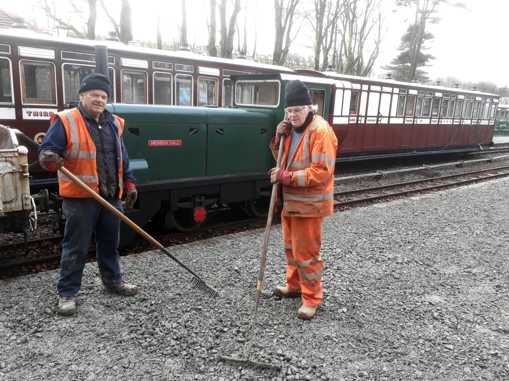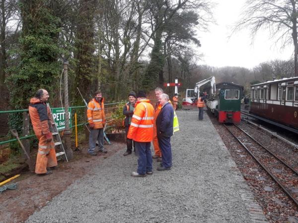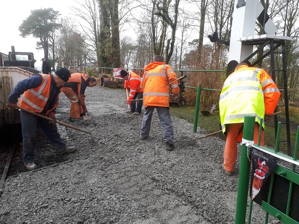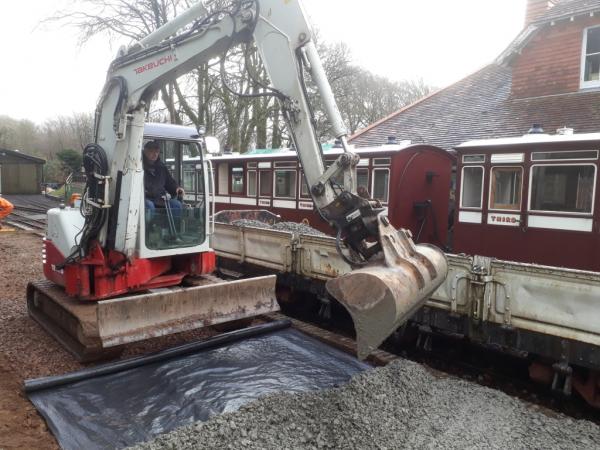 9. The stone was brought in alongside the platform in a DZ open wagon so that Martyn could scoop out bucket loads to spread on top of the membrane.