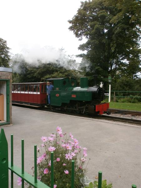 Here's a selection of views of the passenger train of AXE and the four carriages:- Driver Graham Varney, Fireman Andy Foster with Bob Ayres as Guard.
