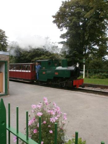 1. AXE rolls in to Woody Bay with the attractive flowers blooming in the platform tubs.