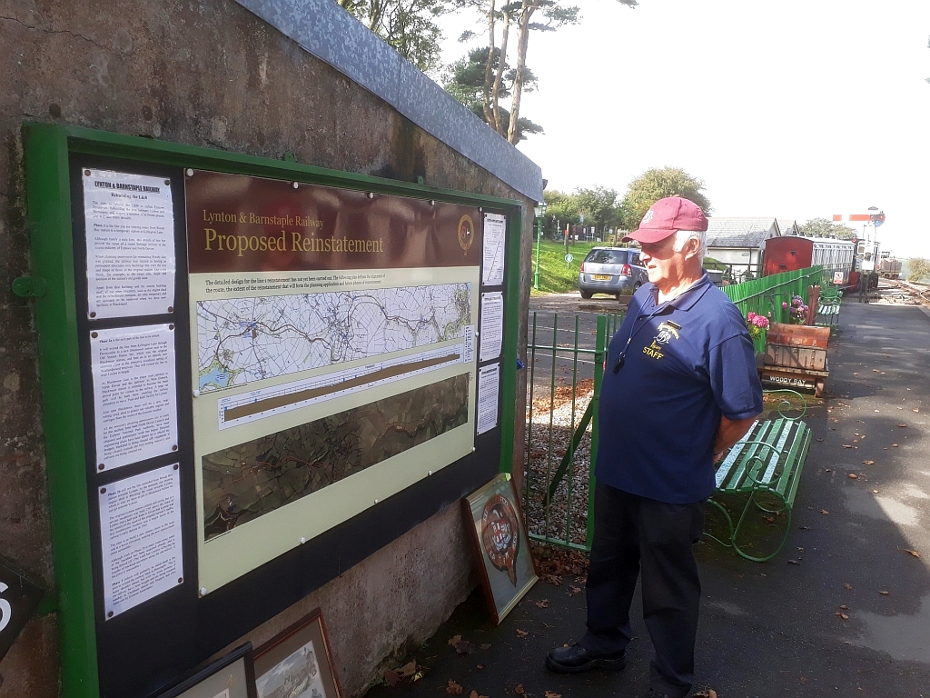 3. Before the first train, Guard Bob Ayres takes a moment out to study the map on display for the railways expansion plans.
