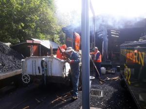 2. LYN being prepared for today's use with driver Graham Bridge and fireman Dave Hallett.
